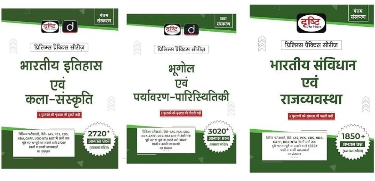 DRISHTI 2025 EXAM (PPS) Bhartiya Samvidhan Evam Rajvyawastha 5th Edition Hindi + Bhugol Evam Paryavaran Paristhitiki 6th Edition + BHARTIYA ITIHAS EVAM KALA SANSKRITI 5TH EDITION